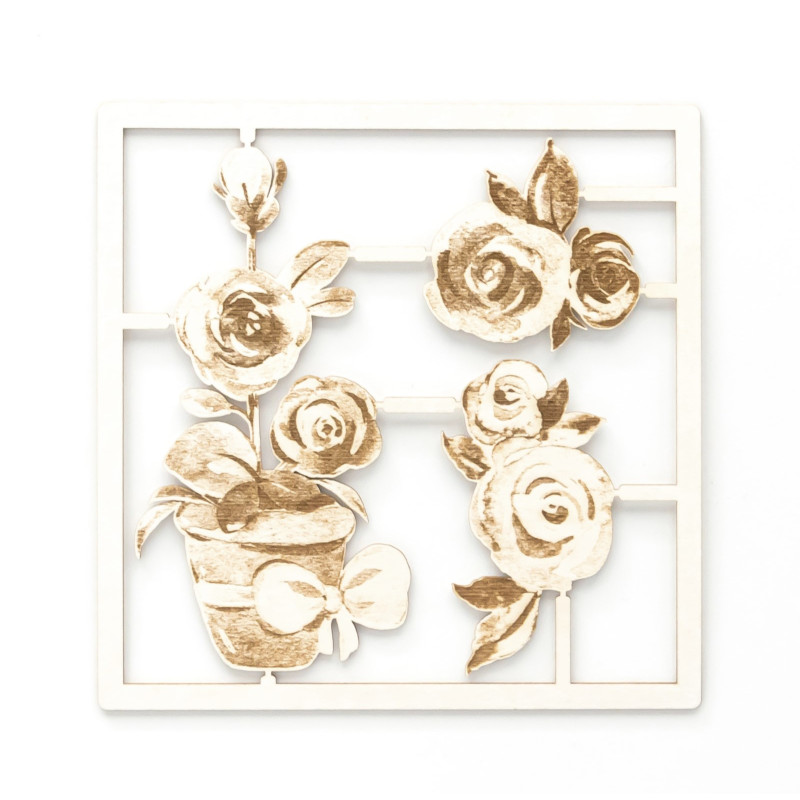 Декоративен Картон, "Саксия с Рози", 11.5 х 11.5 см