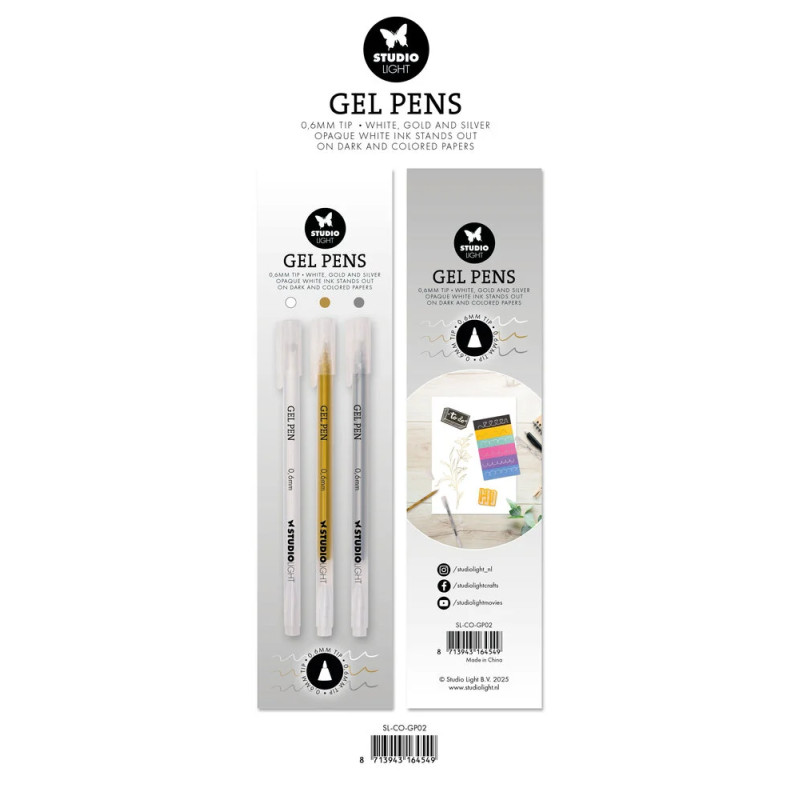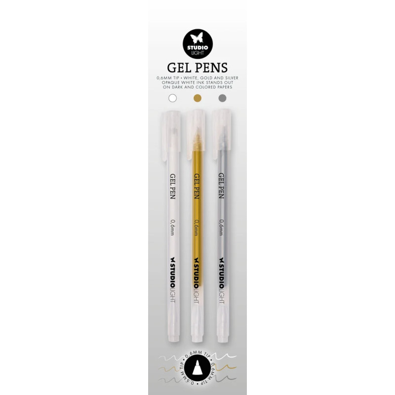 Гел химикалки с връх 0.06 мм - бял, златен и сребърен.Непрозрачното бяло мастило се откроява върху т..