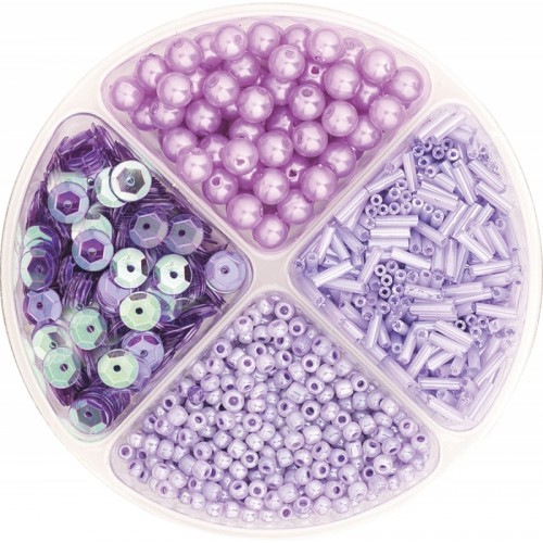 Цветни Мъниста за Декорация в Лилаво и Бяло, 30 грама
