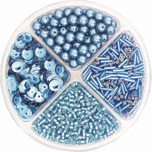 Мъниста и Пайети Deco Mix 6 вида - Сини