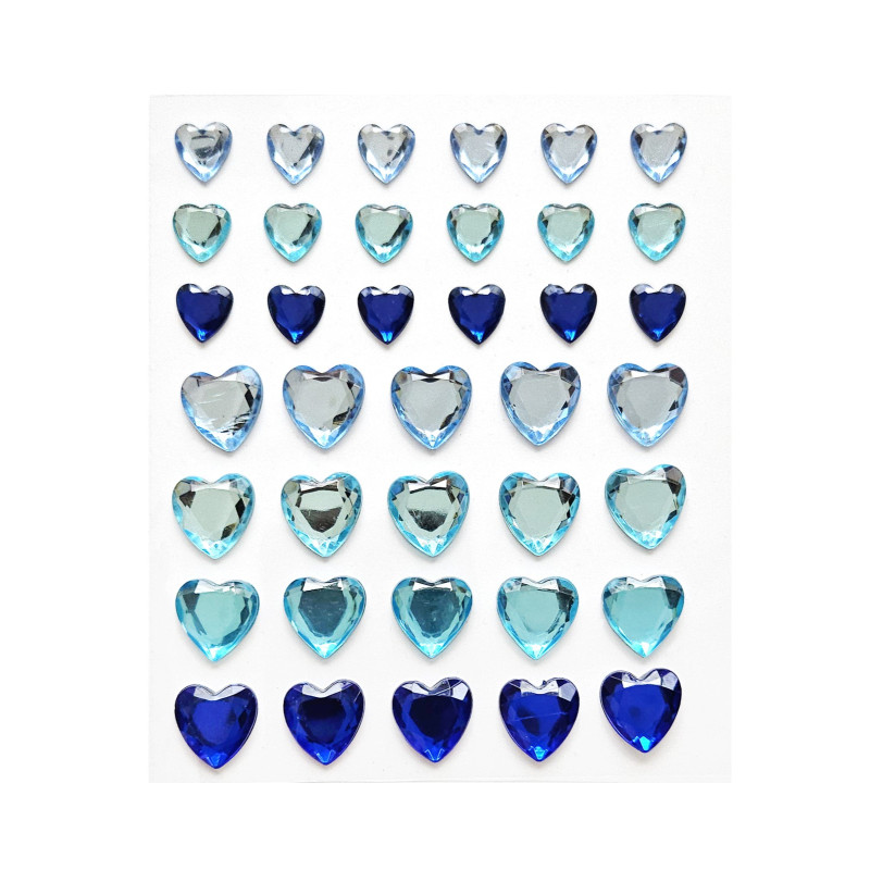 Красиви самозалепващи стъклени камъчета - Сърца в различни нюанси на синият цвят.