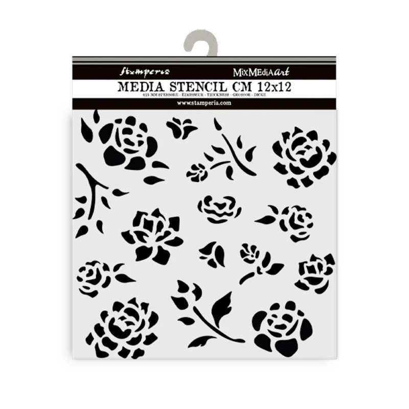 Шаблон за многократна употреба 12x12cm с дебелина 0,25mm - Красиви рози с листеца и клонки