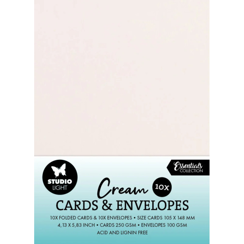 10 сгънати картички и 10 плика за тях, крем.Размер на картичките: 152x152 мм.Картички 250 гр/м², пли..